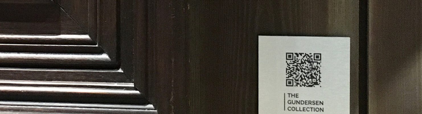 Små metallskilt med logoen til The Gundersen Collection og en QR-kode er alt du trenger for å få vite mer om de enkelte kunstverkene og kunstneren bak.